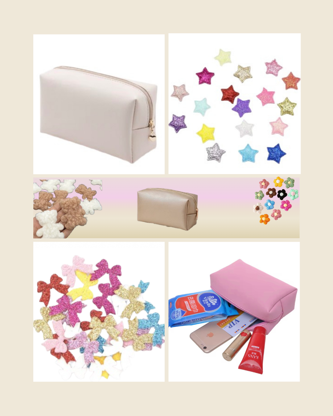 ערכות יצירה לעיצוב תיקי רחצה (מידה M) בסטייל בוטיק